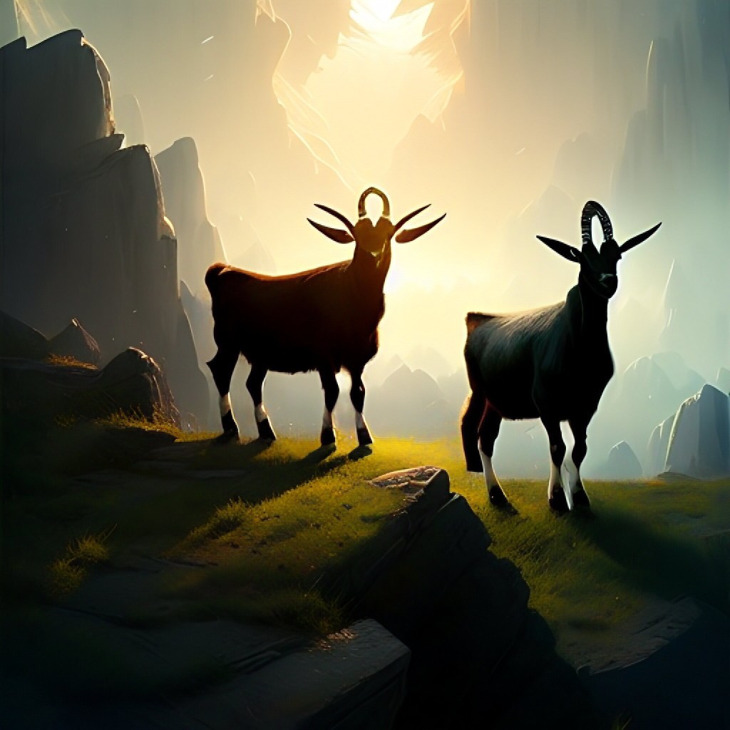 Once upon a time, on the peak of a rugged mountain, there lived two steadfast goats named George and Gracie. They were known throughout the mountain range for their agility and determination – always scaling the toughest crags and peaks.