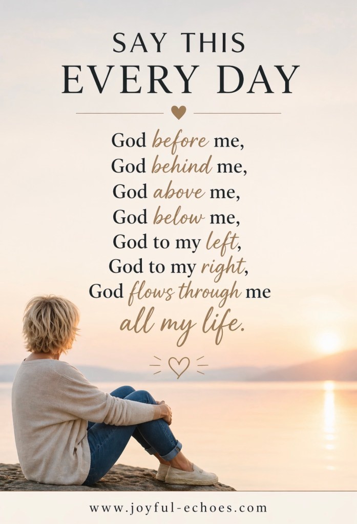 God before me, God behind me,God above me, God below me,God to my left, God to my right,God flows through me all my life.